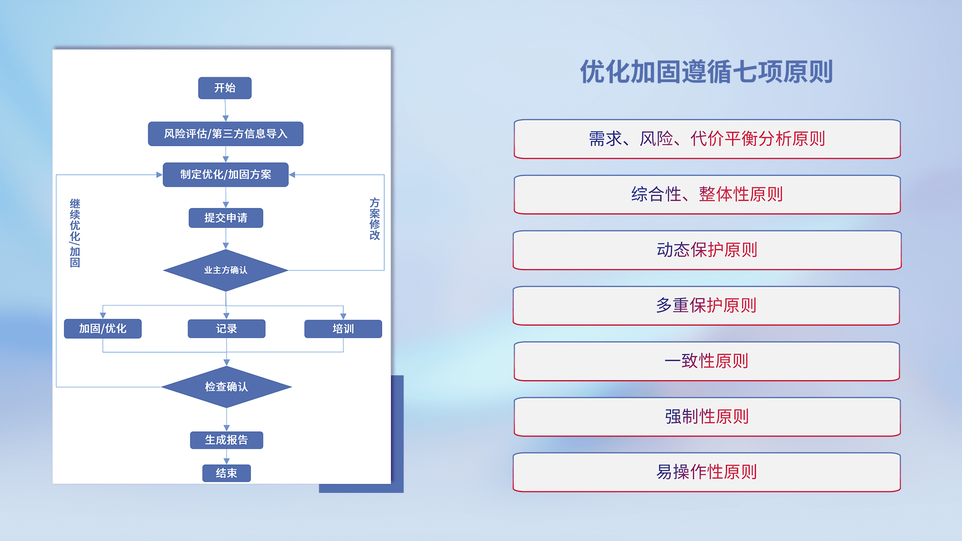 最大程度利用现有资产,,,,对评估发现的问题进行封堵与整改,,,防止漏洞被利用,,,提升整体网络安全性,,,为客户带来高标准的优化加固服务。。。。