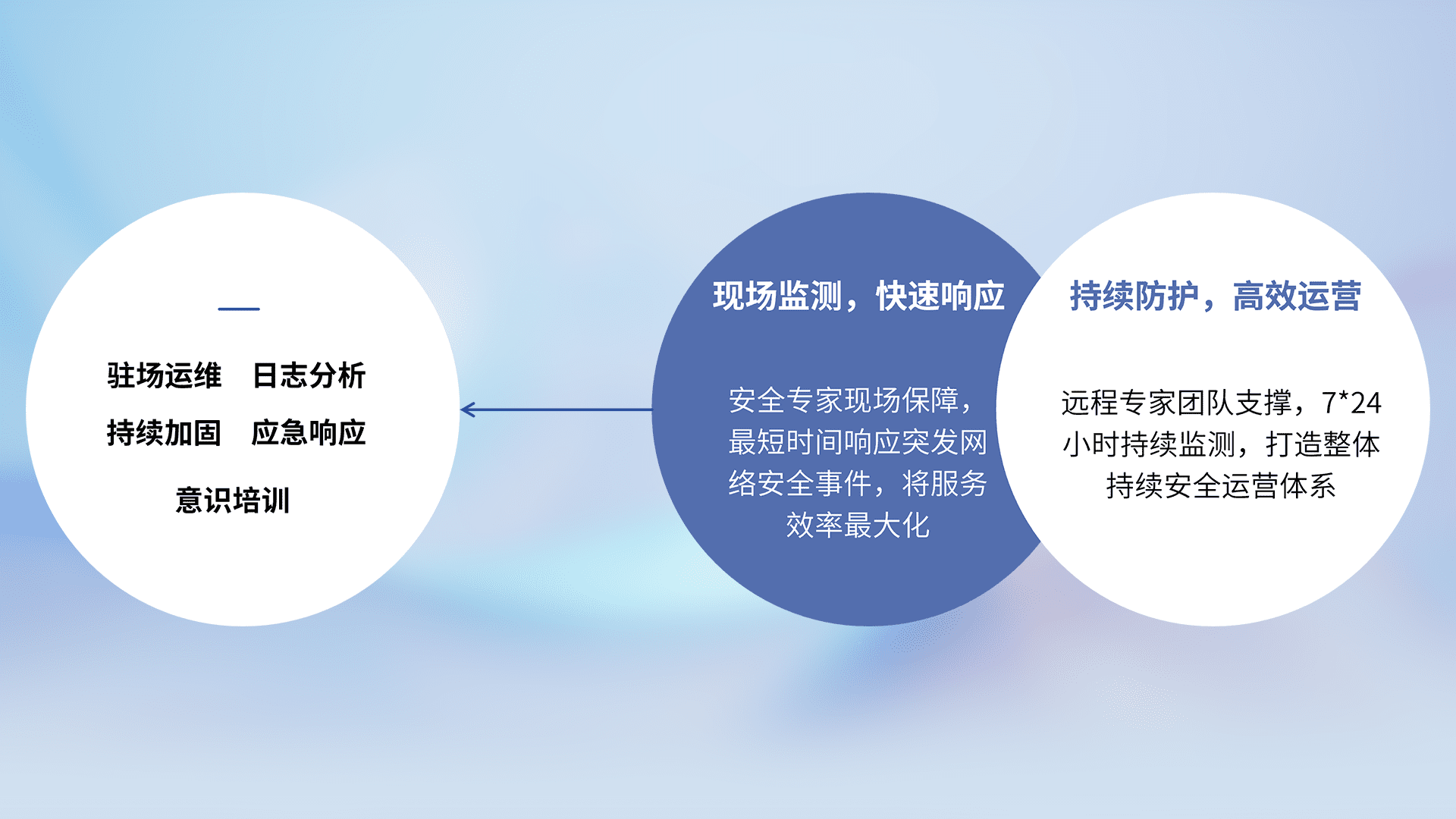 针对客户行业特性,,,,提供专属的一站式安全管理服务,,,,帮助客户全面感知网络空间威胁,,,,通过安全专家的线上、、、、线下防护支持,,,,实现风险闭环,,,将安全保障常态化,,为客户打造常态化安全运维运营服务。。